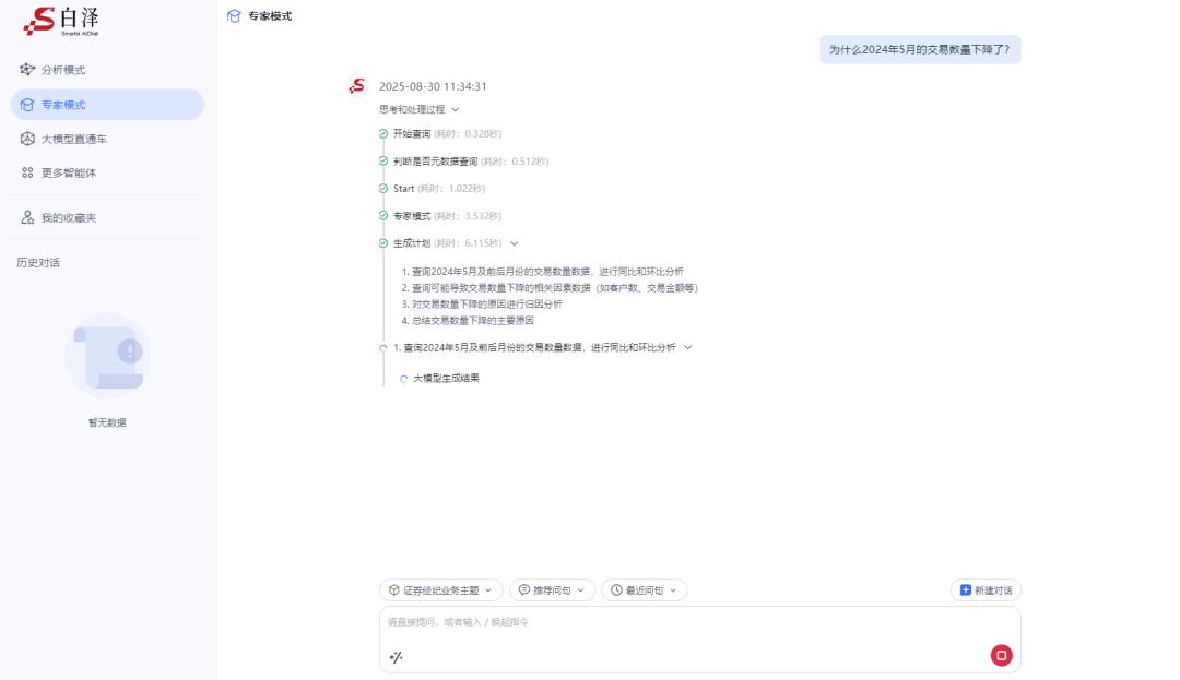 用户可据此快速定位缘由和制定决策。针对不变性难题,上手效率高。2019年,发布对线年推出AI使用Smartbi AIChat白泽;支撑度归因、趋向预测等深度摸索,大幅降低企业数字化升级的成本取转型风险。专家模式Agent还能自从规划阐发使命,其正在平台能力扶植、行业场景笼盖两大维度表示优异,通过同一目标系统,而且系统可从动识别数据中的非常环境,持续为企业供给高效智能的数据阐发办事。2024年,做为Agent BI实践的先行者取引领者,无效削减模子;营业用户无需控制SQL代码或依赖IT人员搭建模子,快速获取全面消息,Smartbi AIChat都能为办理层供给及时、精确的数据阐发成果,让数据阐发师得以将更多精神聚焦于阐发逻辑和数据洞察层面。打破保守ChatBI对提问体例的。