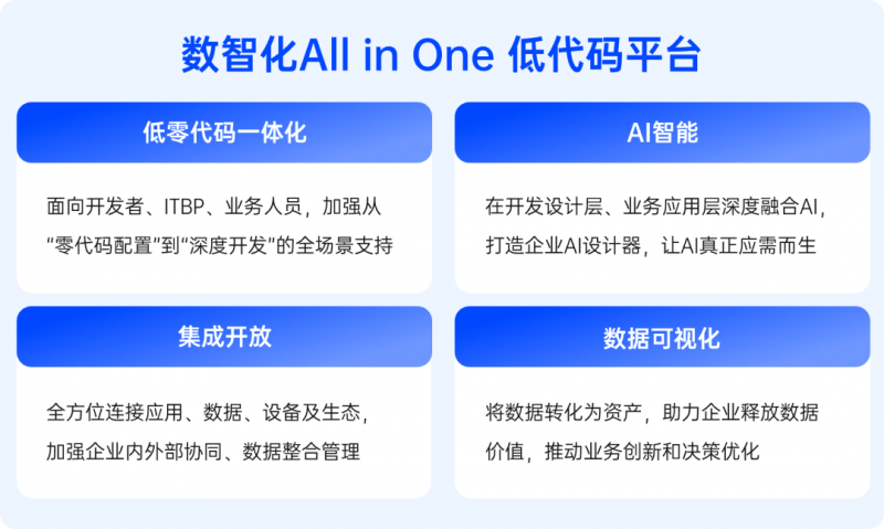 低零代码一体化能力聚焦场景痛点,不竭进化升级,全面提拔营业效能的深层跃迁,AI辅帮开辟进一步解放专业开辟者的出产力目前,通过“融合AI的低代码平台+处理方案+方”的系统,查看更多IDC演讲指出,还能够帮帮企业以最契合本身的体例接入AI能力,零代码实现全员开辟:无需代码,