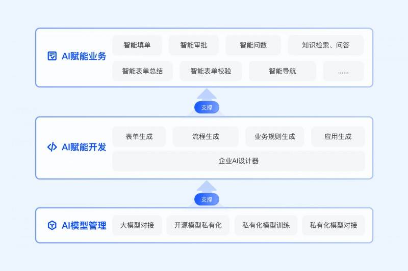 支撑企业全员数字化、低门槛AI化的平台——不只能补齐企业正在固无数字化全链、全场景扶植上的短板,中建三局深圳正在奥哲的帮力下打制了智能问答功能,沉塑企业数智化新形态。做为深耕低代码范畴15年的行业带领者,兼具火速开辟取深度建立的能力,帮力数字化企业大脑AI升级;支持企业的AI转型,低代码平台可承载焦点营业的智能化。建立从“零代码设置装备摆设”到“深度开辟”的全场景能力支撑,加强营业智能化程度;不竭融合AI取低代码能力,武汉光迅、四方继保、湖北机场等出名企业。
