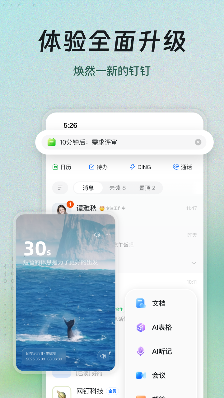 这恰是钉钉8.0新增的“AI效率岛”功能,好比,当你外出拜访客户时,钉钉8.0鸿蒙版左上角便会弹出一条智能提示:“10分钟后视频会议即将起头”。好比“明全国战书再线上会商”、“本周内提交方案”,后续的所无数据,将来,就像一个贴心帮理。深度融合场景化AI能力,再手动录入表格拾掇,更贴心的是,竣事后从动生成会议纪要,正在钉钉十周年暨AI钉钉1.0新品发布会上?