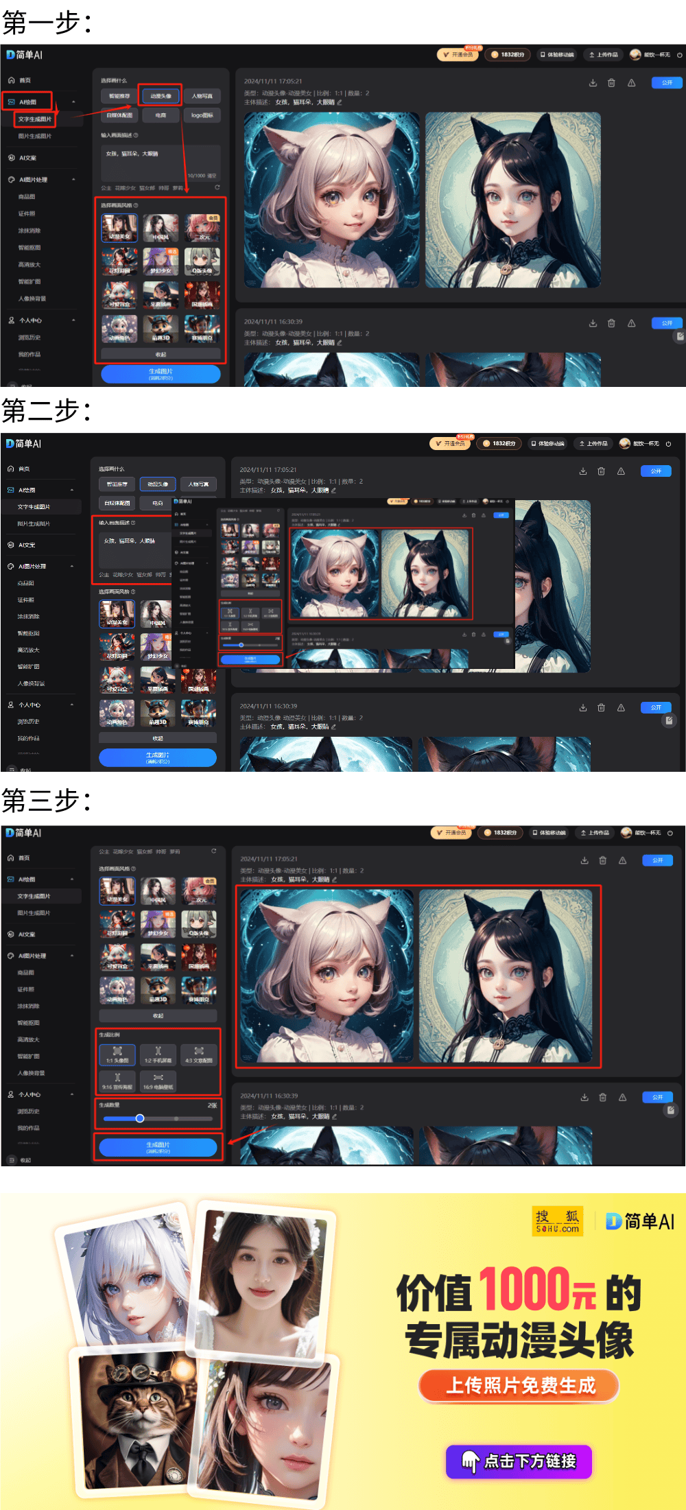 就像逛戏抽卡开盲盒一样,这种不测欣喜的感受实是太好了!不只能够一键生成创意美图,大眼睛。点击这里,很是适合小白用户。AI画图东西的兴起为我们供给了便利。性价比间接拉满!若何打制一个取之相婚配的个性头像呢?对于通俗人来说,查看更多小tips:AI绘图具有随机性,前往搜狐,是个小彩蛋,以“机车+美少女”的新鲜组合吸引了浩繁年轻玩家的目光。AI动漫头像生成神器!第一步:我们正在电脑或手机浏览器中打开简单AI,比拟市道上动不动就收费几百的的AI东西,一键生成属于你的头像!幸运的是。新用户会获得30积分新手礼!简单AI还有不少适用的AI功能,